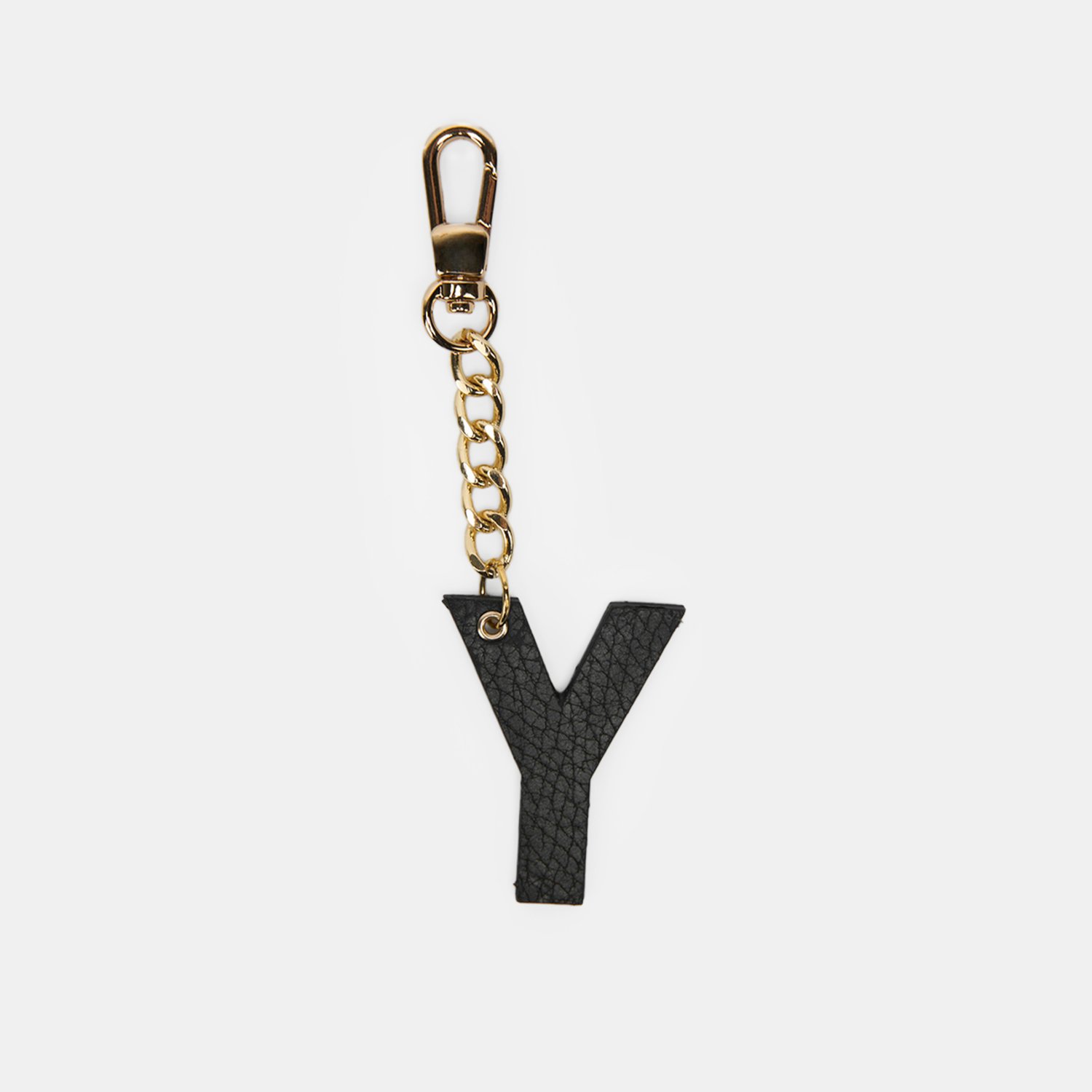 Y Harfi Siyah Hakiki Deri Charm Anahtarlık