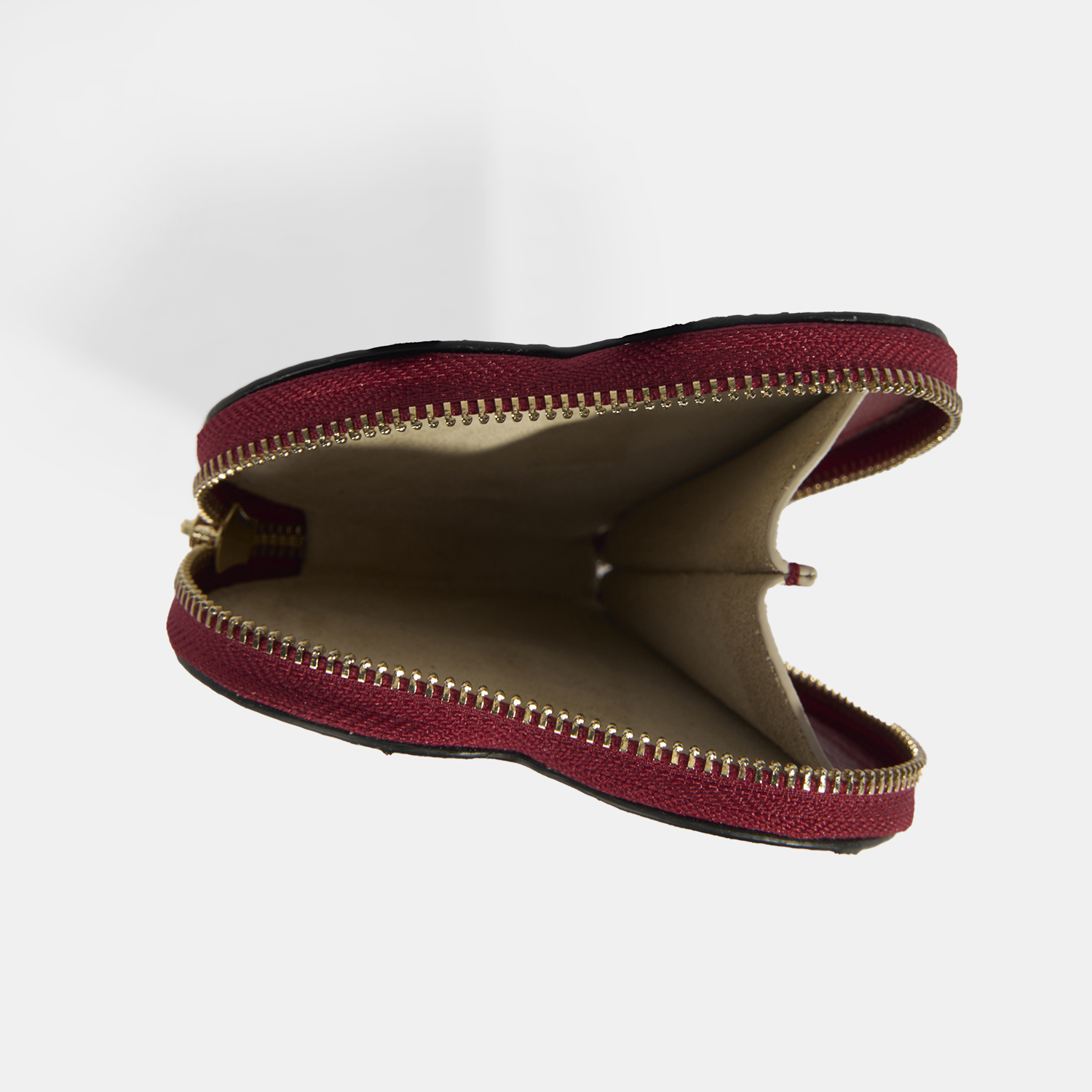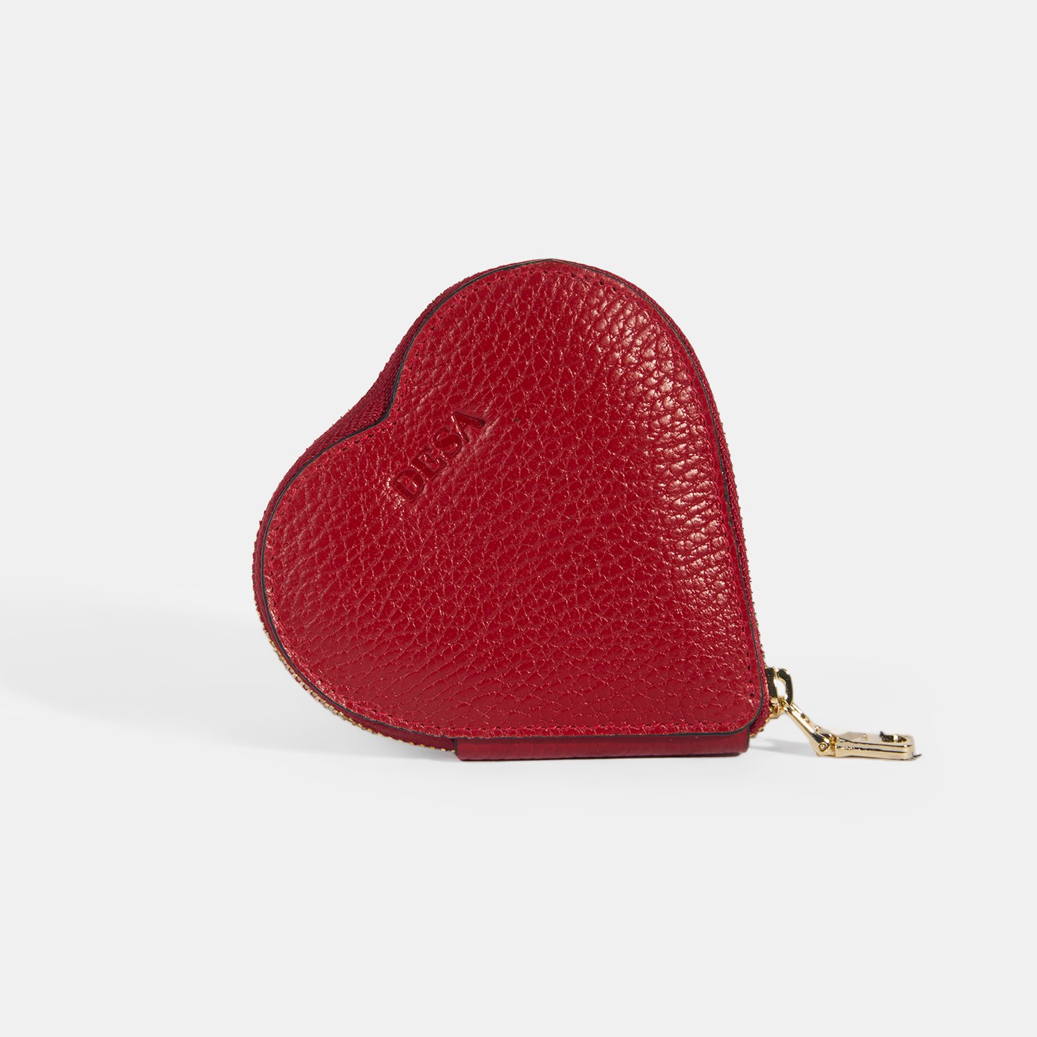 Kalp şeklinde, fermuar ile kapanan, mini deri bozuk para cüzdanı ile tarzınızı tamamlayın.