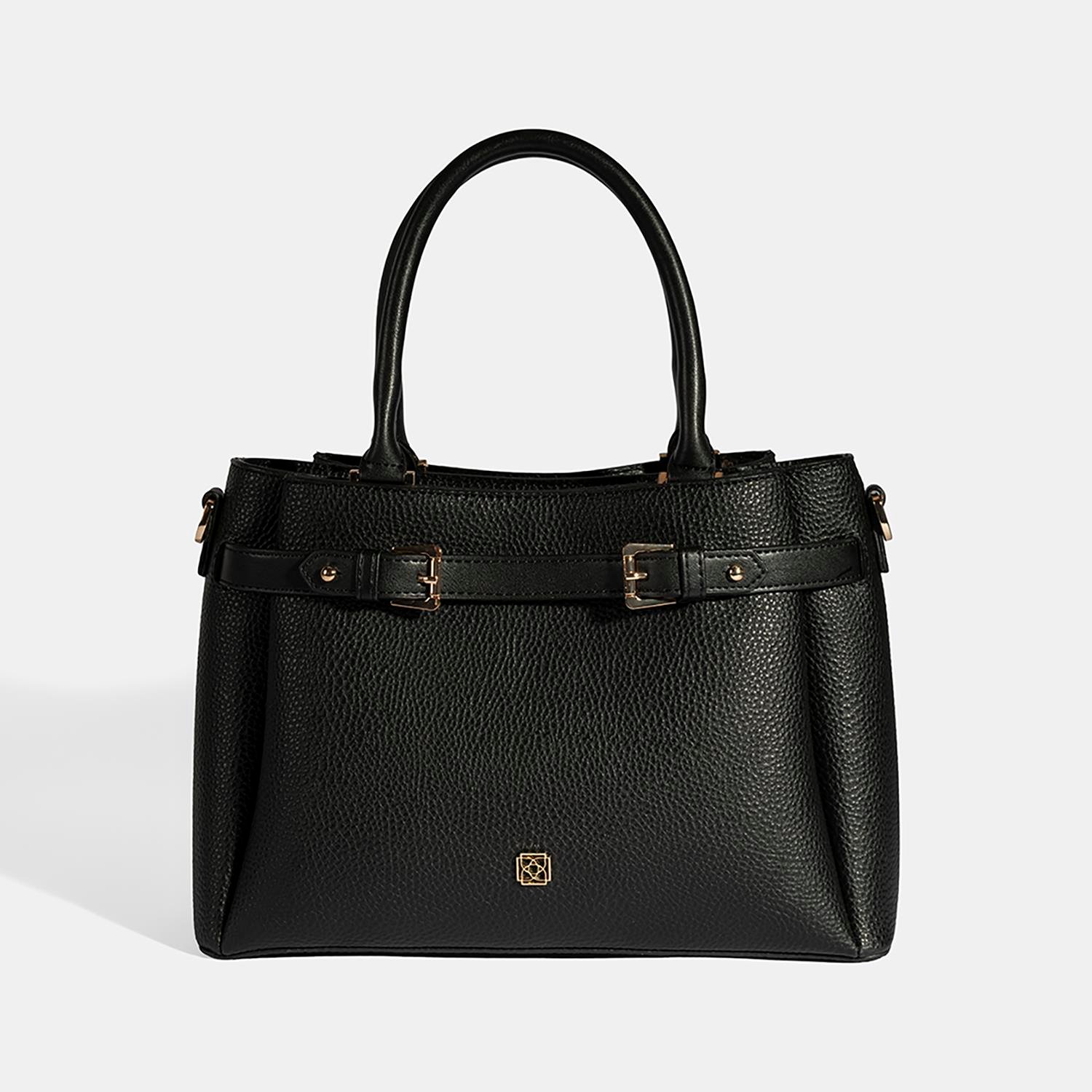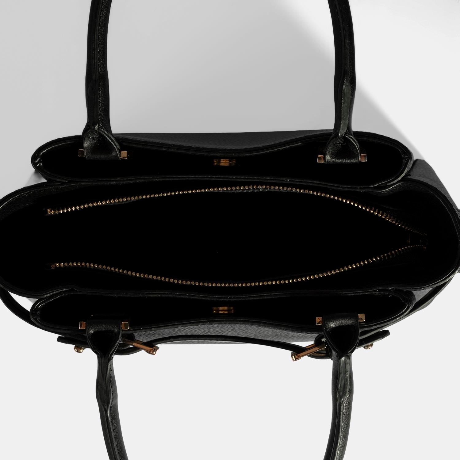 Zarif metal aksesuarları ve fermuarlı ve mıknatıslı kapanışıyla hem şık hem işlevseldir.
