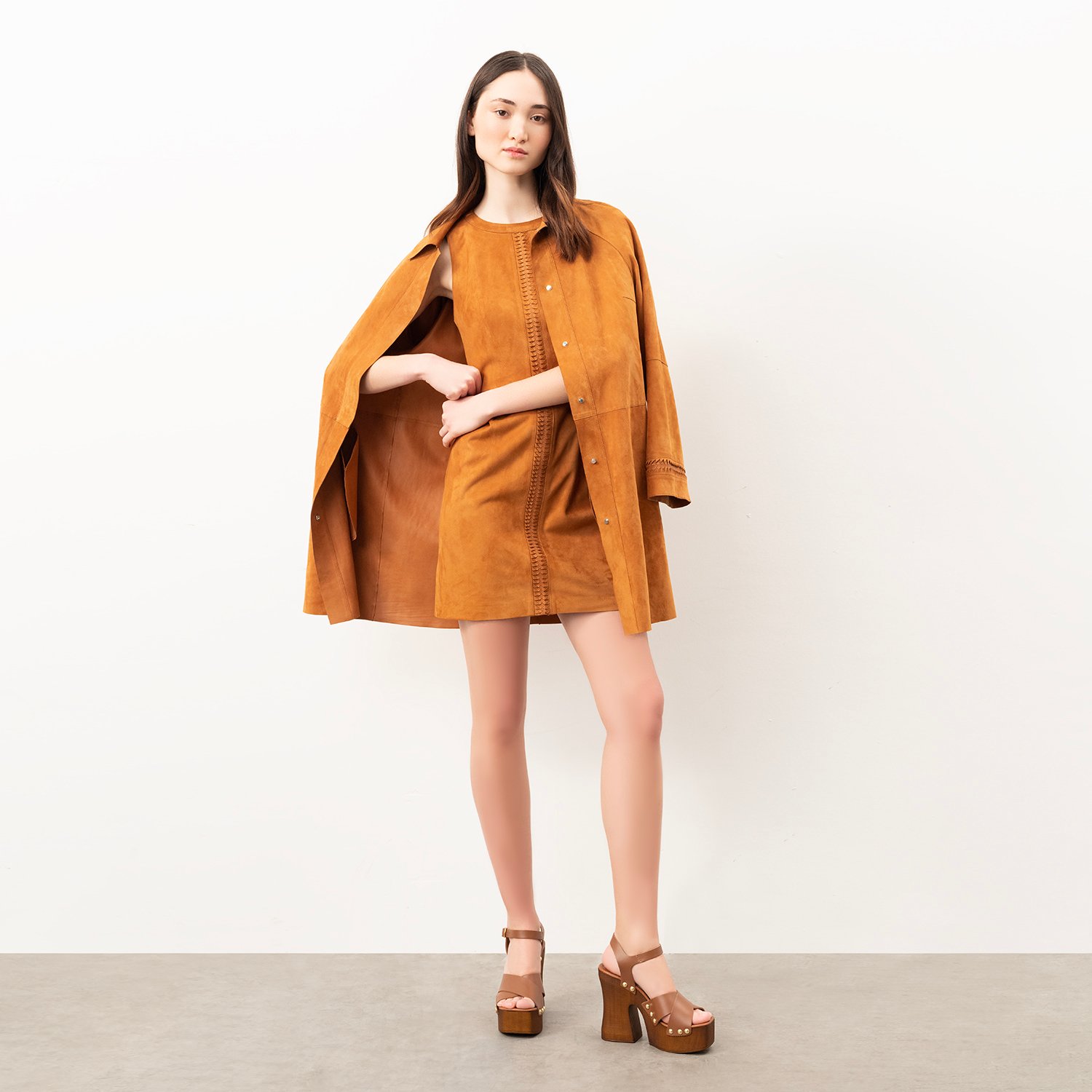 Ysabel Konyak Kadın Süet Deri Pardösü